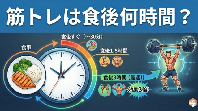 筋トレは食後何時間空けるのがベスト?食後のゴールデンタイムを科学的に解説。食前・食後それぞれのメリット・デメリット、目的別の最適タイミング、忙しい人向けの実践的なスケジュール例を紹介。